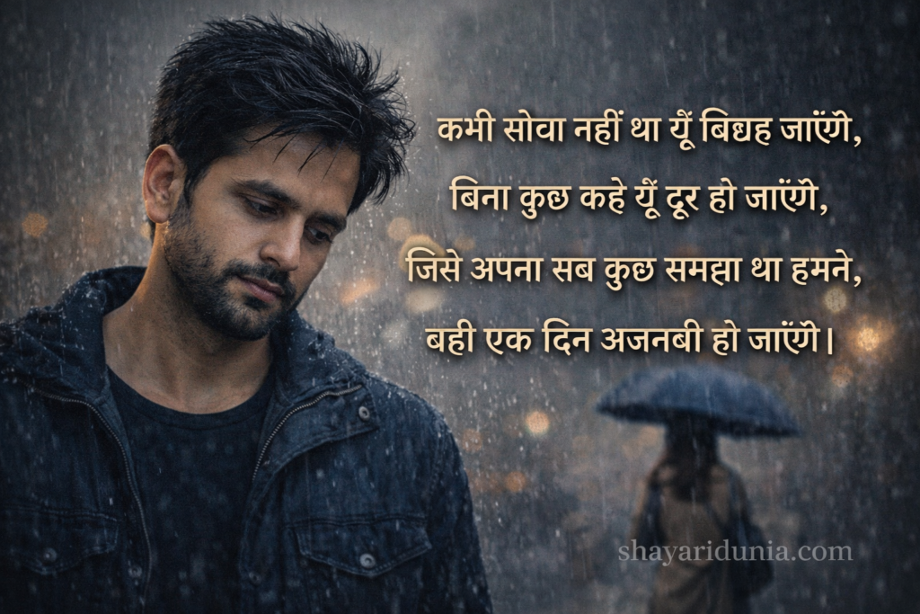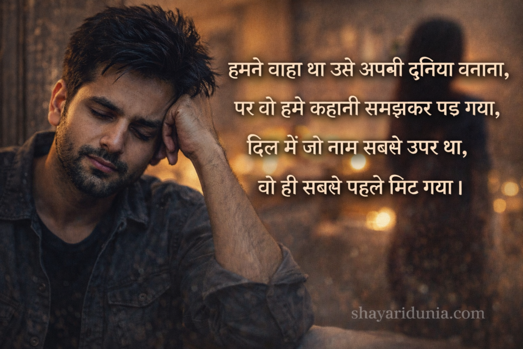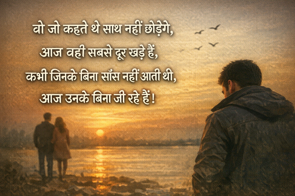 If you are searching for Sad Hindi Shayari, heart touching sad shayari in Hindi, dard bhari shayari, or broken heart shayari in Hindi, you are at the right place. This collection features the latest and unique emotional sad shayari in Hindi that beautifully express feelings of love, heartbreak, loneliness, and betrayal.